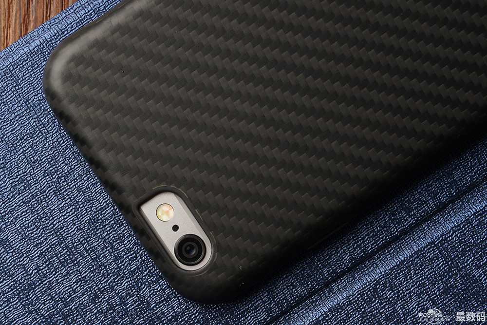 Evutec Karbon Sl保護(hù)套的厚度大概有1.5毫米左右,或許不算很薄,但大家都知道iPhone 6有一個(gè)比較煩人的地方,就是它那顆突起的攝像頭,套上Evutec Karbon Sl保護(hù)套以后背部恰好略微高出于攝像頭,平放在桌面上再也不用擔(dān)心會(huì)磨損攝像頭,影響成像效果了。