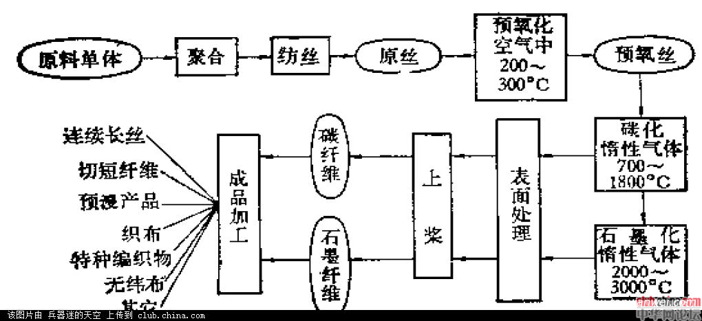 圖1:碳纖維主要生產工藝流程圖 本文來自123