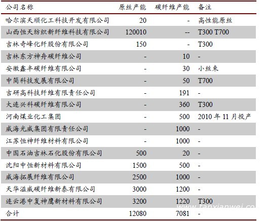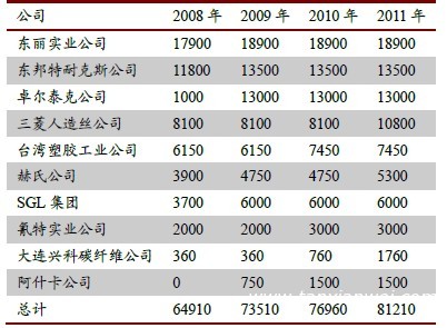 表1:全球主要碳纖維廠商產(chǎn)能統(tǒng)計