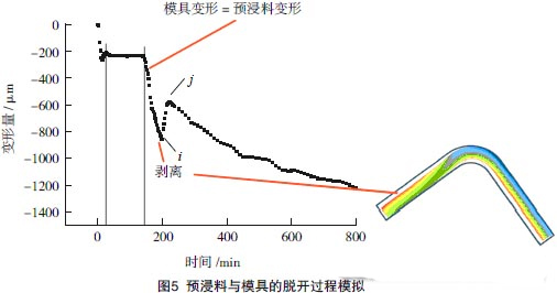 · 模具與預(yù)浸料的相互作用與脫開過程。
