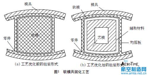 針對(duì)上述問題,我們經(jīng)過反復(fù)試驗(yàn),在工程化生產(chǎn)中不斷改進(jìn),將軟模共固化工藝優(yōu)化為圖1(b)所示形式,利用這種工藝方案連續(xù)生產(chǎn)300多架份的復(fù)合材料產(chǎn)品,質(zhì)量一直穩(wěn)定。
