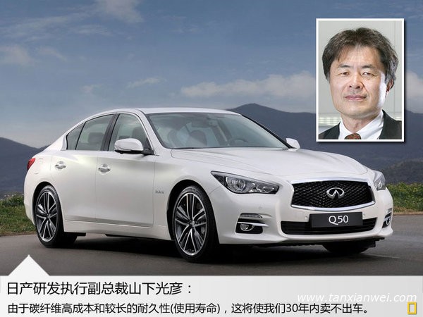 碳纖維技術不僅可以使車身輕量化,同時還可以強化車身強度,但是過高的成本費用令碳纖維材料的應用依然有局限性。日前,日產(chǎn)研發(fā)執(zhí)行副總裁山下光彥對于碳纖維材料的使用表示:“由于碳纖維高成本和較長的耐久性(使用壽命),這將使我們30年內(nèi)賣不出車。”因而日產(chǎn)以及英菲尼迪在碳纖維技術方面將不會大規(guī)模應用于未來幾年所規(guī)劃的新車型中。