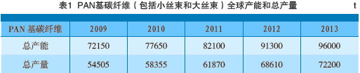 聚丙烯腈(PAN)原絲是制備碳纖維最主要的原料。對(duì)于“小絲束”(小于24K),2010年產(chǎn)能約為57650t,2013年為71000t。由于這些產(chǎn)能僅僅是名義上的產(chǎn)量,并不代表實(shí)際產(chǎn)能,因此采用了產(chǎn)量系數(shù)進(jìn)行校正。