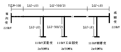常白線上現(xiàn)狀接2個(gè)110kV變電所,分別是:110kV采菱變,2x50MVA主變;110kV工業(yè)園變,2x50MVA主變。另原先還接有110kV湖塘變(2x40MVA),因輸送容量不足,現(xiàn)已臨時(shí)斷開。