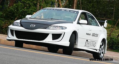 馬自達(dá)6改裝的碳纖維引擎蓋上的兩個(gè)網(wǎng)狀出氣口更是如虎添翼,如同黑馬的兩個(gè)鼻孔。 123,123