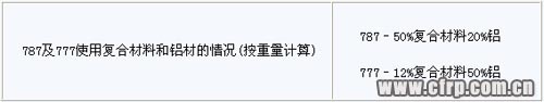 與波音777飛機(jī)相比,復(fù)合材料在波音787中的占比有很大提升,達(dá)到50%,遠(yuǎn)超過鋁所占的20%。而波音777中復(fù)合材料約占12%,鋁占50%。