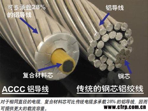 近年來,以日本和美國為首的各國都在研究新型架空輸電用導(dǎo)線,以取代傳統(tǒng)的鋼芯鋁絞線。使用高性能環(huán)氧樹脂生產(chǎn)的碳纖維復(fù)合芯電纜具有重量輕、強(qiáng)度高的特點(diǎn),它在高溫下的熱膨脹系數(shù)較低,弛度更小,可在較高溫度下工作。與相同截面的其它導(dǎo)體相比,采用碳纖維復(fù)合芯的電纜可比傳統(tǒng)電纜多承載28%的鋁導(dǎo)線,所傳輸?shù)碾娏魅萘靠商岣?0%-100%。因此,中國電力行業(yè)對碳纖維復(fù)合芯鋁導(dǎo)線(簡稱“ACCC”)的強(qiáng)烈需求應(yīng)運(yùn)而生。