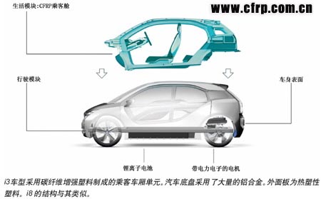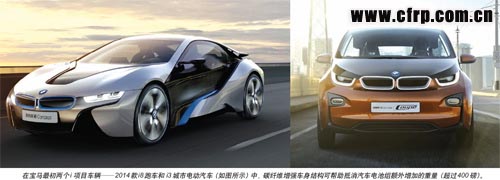2014款寶馬i3電動(dòng)汽車將于今年晚些時(shí)候?qū)⑼度肷a(chǎn),總的目標(biāo)是將其重量減輕200kg(440lb),來(lái)抵消電池重量。2014款i8車型——插電式混合動(dòng)力跑車也將獲得相同的減重效果。一般來(lái)說(shuō),一輛車重量減輕100kg(220lb),二氧化碳排放量平均來(lái)看最高可降低10g/km。而這些車型(寶馬所謂Project i子品牌的首批車型)在乘客防護(hù)方面的性能都將受益于碳纖維優(yōu)越的彈性模量及其拉伸強(qiáng)度——這兩個(gè)參數(shù)都超過(guò)硼鋼。