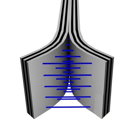 圖 碳納米管(藍(lán)色)縫紉技術(shù)加固碳纖維復(fù)合材料