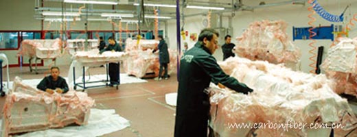 由于使用半成品的預(yù)浸料,可以連續(xù)鋪貼,提高了速度,因而取代了以往重復(fù)交替的纖維和樹(shù)脂的逐層鋪貼工序,使得生產(chǎn)效率大為提高,成為一種普遍采用的量產(chǎn)化的生產(chǎn)工藝。根據(jù)制品的不同,預(yù)浸料成型工藝的產(chǎn)量一般在幾千到幾萬(wàn)件之間,非常適合于定制產(chǎn)品的生產(chǎn)。