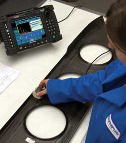 飛機制造商、維修服務(wù)商、以及航空公司近期均開始使用超聲相控陣技術(shù)確保飛機復(fù)合材料組件的加工質(zhì)量。其中,由碳纖維增強聚合物(CFRP)材料制成的組件具有多種形狀及不同厚度,因此,如何對這種材料進(jìn)行檢測成為一項難題。雖然對該類圓角材料的檢測目前尚新,但隨著在飛機構(gòu)造中越來越多地使用CFRP疊層板,這項檢測正變得越來越重要。