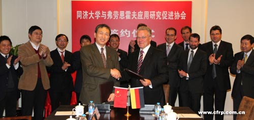 雙方簽署了《同濟大學和弗勞恩霍夫應用研究促進協(xié)會戰(zhàn)略合作協(xié)議》,并共同為合作成立的“同濟大學——弗勞恩霍夫?qū)W院”揭牌。此外,同濟大學校長助理、汽車學院院長余卓平教授和弗勞恩霍夫制造技術和應用材料研究所(IFAM)Busse教授,校長助理、材料學院院長吳廣明教授和弗勞恩霍夫建筑物理研究所(IBP)Hauser教授在雙方戰(zhàn)略協(xié)議框架下,又簽署有關電動汽車和建筑材料測試領域的兩個合作備忘錄。根據(jù)合作備忘錄,“同濟大學——弗勞恩霍夫?qū)W院”的首個項目將在電動汽車領域啟動,與材料領域相關的備忘錄則涉及共同建立一個建筑材料野外試驗基地。