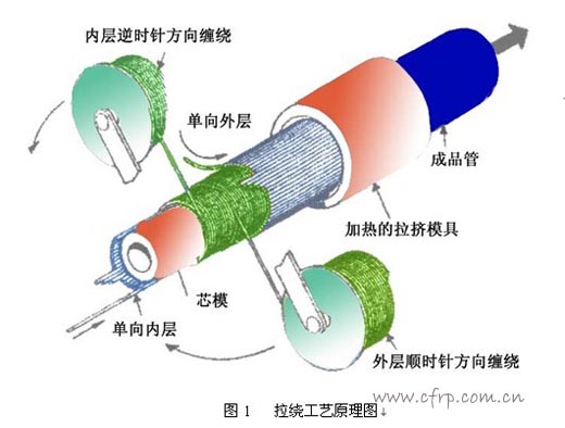 其工作原理是先拉,形成單向里層;環(huán)向纏繞,增加徑向強(qiáng)度;單向拉擠,形成較光滑的外壁。