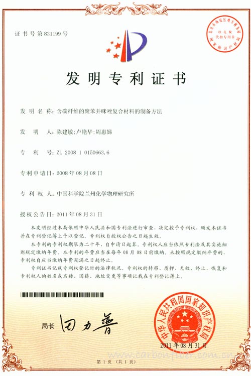 中國科學院蘭州化學物理研究所先進潤滑與防護材料研發(fā)中心磨損和表面工程組研發(fā)出含碳纖維的聚苯并咪唑復合材料制備新方法,該項技術于近日獲得國家發(fā)明專利授權。(含碳纖維的聚苯并咪唑復合材料的制備方法,專利號:200810150663.6)