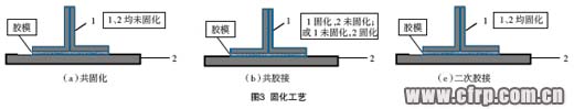 (4)分析制件的成型工藝方法,是共固化、共膠接還是二次交接(圖3)。共固化中,所有層為濕鋪層一次進(jìn)罐,需要較多模具組合到一起同時使用,通常整套模具較復(fù)雜;共膠接為干濕件進(jìn)罐固化,需要一部分零件的成型模具,及已固化零件與濕鋪層二次進(jìn)罐固化的模具;二次膠接時所有零件已固化,通過膠膜把他們固化到一起,需要所有零件的成型模以及二次膠接的定位模具。