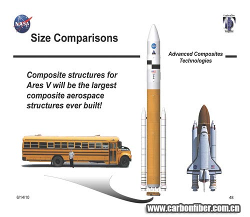 圖6 美國國家航空航天局(NASA)的運載火箭(先前的“戰(zhàn)神V”)可以成為因采用OOA預浸料而節(jié)省大筆金錢的一個很好例證。該項目如果采用12m×24m的熱壓罐,估計成本達到$1億。NASA的復合材料與結(jié)構(gòu)高級顧問Mark Shuart相信,一旦直徑達10m的火箭筒身部分被證明可以使用OOA工藝,那么航空航天復合材料的制造將發(fā)生極大的變化。圖片來源:NASA