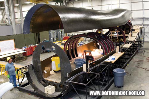 圖3 先進復合材料貨運飛機的機身由8個部件組成,它們采用英國先進復合材料集團(ACG)提供的MTM-45預浸料經(jīng)過OOA固化制成。圖片來源:洛克希德馬丁公司 123456
