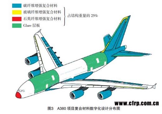 空客公司在整個(gè)A350 XWB項(xiàng)目、A380復(fù)合材料項(xiàng)目中完成了對(duì)所有復(fù)合材料零件的CATIA平臺(tái)設(shè)計(jì),并使用復(fù)合材料設(shè)計(jì)模塊完成數(shù)字化的設(shè)計(jì)制造任務(wù)。以空客A380(圖3)為例:其復(fù)合材料用量占到結(jié)構(gòu)重量的25%,機(jī)身段、尾翼段、襟副翼的設(shè)計(jì)制造都是采用CPD模塊對(duì)設(shè)計(jì)制造流程進(jìn)行優(yōu)化??湛凸镜墓こ處熡肅ATIA定義模具面、層的位置和邊界、泡沫夾芯的位置等。CPD軟件將層管理起來(lái),為每個(gè)層自動(dòng)生成表格,記錄非幾何信息與層的邊界、相關(guān)的標(biāo)記等聯(lián)系起來(lái),確保層在制造過(guò)程中能正確定位。CPD的文檔功能,生成鋪層圖、鋪層表、材料表和序列表,從而使空客的復(fù)合材料設(shè)計(jì)工作時(shí)間降低了約50%,采用了新技術(shù)和軟件設(shè)計(jì)制造復(fù)合材料部件后,空客公司節(jié)省了5%~25%的初始設(shè)計(jì)時(shí)間,減少了45%的反復(fù)設(shè)計(jì)修改時(shí)間,極大地降低了手工鋪層的時(shí)間,達(dá)到了全過(guò)程控制復(fù)合材料鋪層,消除了反復(fù)試驗(yàn)的過(guò)程,提高產(chǎn)品質(zhì)量的同時(shí)最大限度地降低了產(chǎn)品的廢品率。