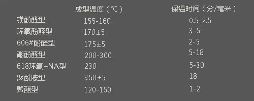 幾種典型模壓料的成型固化溫度和保溫時間如下: