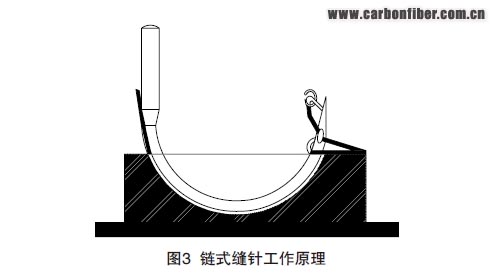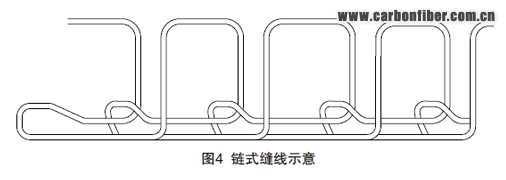 (2)鏈?zhǔn)娇p合??p頭固定于懸臂機(jī)械手上,依靠機(jī)械手來完成復(fù)雜的縫合動作。因此,鏈?zhǔn)娇p合可以完成所有復(fù)雜曲面預(yù)制體的縫合,但由于縫針為彎月形縫針,所以鏈縫通常適用于相對較薄的預(yù)制體。鏈?zhǔn)娇p合的最大縫合厚度為10mm,當(dāng)纖維預(yù)制體厚度小于1mm,且零件型面曲率較大時,在雙面縫合工作平臺的限制下無法使用鎖式縫合;而對于Tufting縫合,因為零件較薄,縫線不易留在零件內(nèi),所以對于此種預(yù)制體的縫合最好采用鏈?zhǔn)娇p合方式。 本文來自123