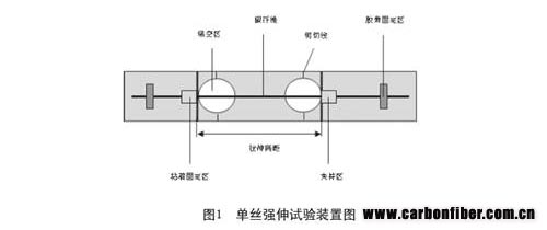 碳纖維單絲的強伸試驗不同于其他柔性纖維的單纖維試驗。碳纖維不能直接夾持在預定隔距的兩夾頭間。其原因很簡單,一是纖維的脆性使整個夾持成功率極低,纖維往往在夾持過程中因彎折而斷裂。二是即使夾持成功,夾持端會對纖維產(chǎn)生損傷,使纖維的斷裂發(fā)生在鉗口處,所測數(shù)據(jù)不能反映纖維的真實特性。因此,碳纖維單絲的強伸試驗首先要求將單根碳纖維粘貼于特制的試樣卡上,