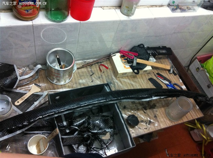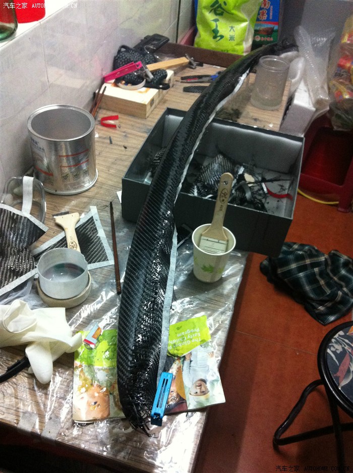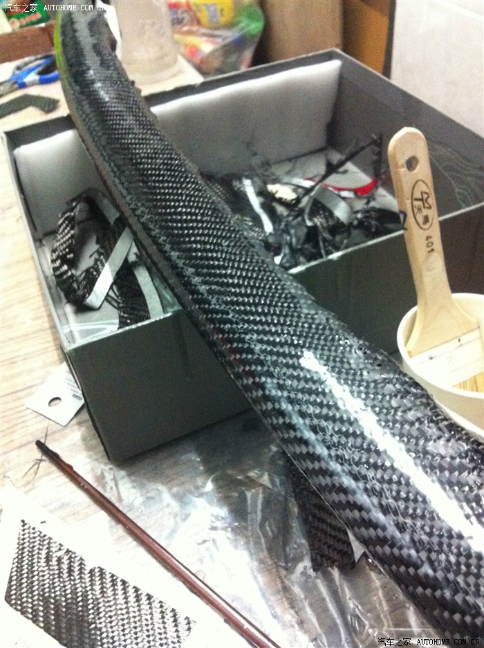“車(chē)禍現(xiàn)場(chǎng)”兄弟,請(qǐng)看下面的幾個(gè)照片,尾翼制作過(guò)程中,包的雙層碳纖維,樹(shù)脂要刷好幾遍呢,這是第二層的第二遍,預(yù)計(jì)還要一周時(shí)間。