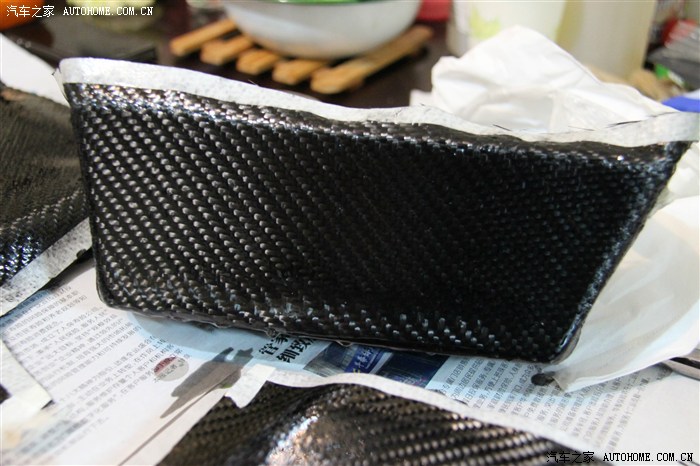 覆蓋碳纖維布的時(shí)候要注意,不能用手指用力按表面,否則碳纖維布的纖維很容易被弄亂,弄亂了就不好玩了。。。